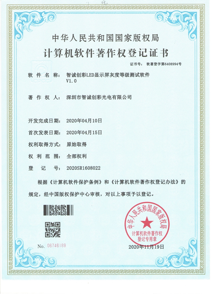 > 計算機軟件著作權登記證書